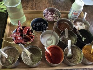 改めてたくさんの野菜やスパイスがテーブルに並ぶと
